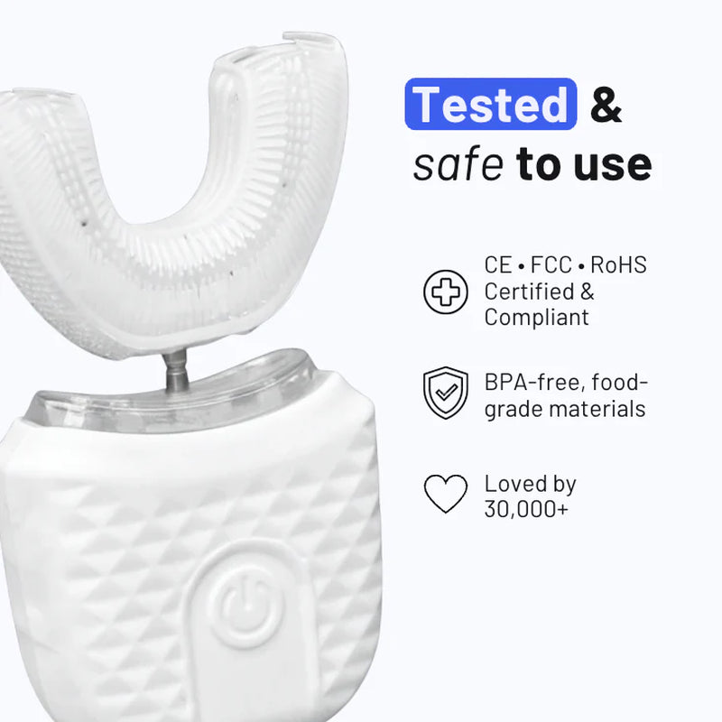 LumoBrush makes brushing effortless. Its U-shaped silicone brush head fits naturally over your teeth, using gentle sonic vibrations to help clean every surface in just 30–45 seconds.